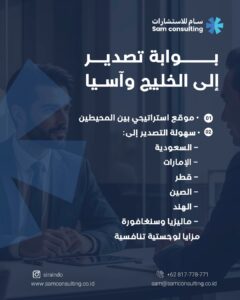 بفضل موقعها الجغرافي الاستراتيجي بين المحيط الهادئ والهندي، تُعدّ إندونيسيا مركز عبور تجاري مثالي للتصدير إلى: السعودية، الإمارات، قطر، الصين، الهند، ماليزيا وسنغافورة، ما يمنح الشركات الأجنبية ميزات لوجستية كبيرة.